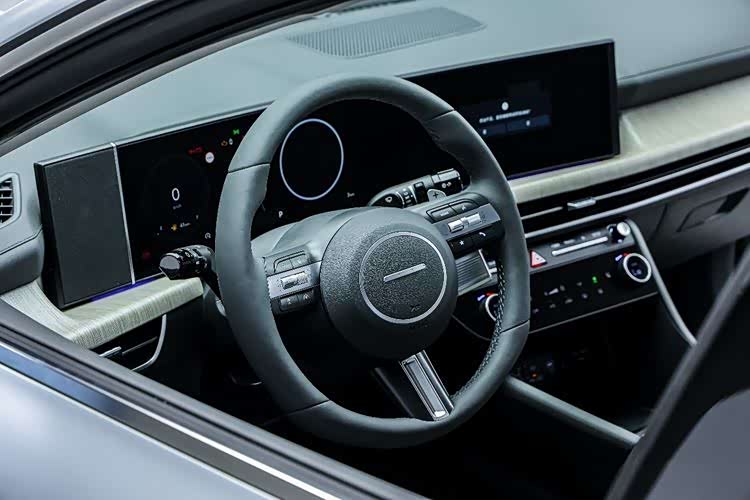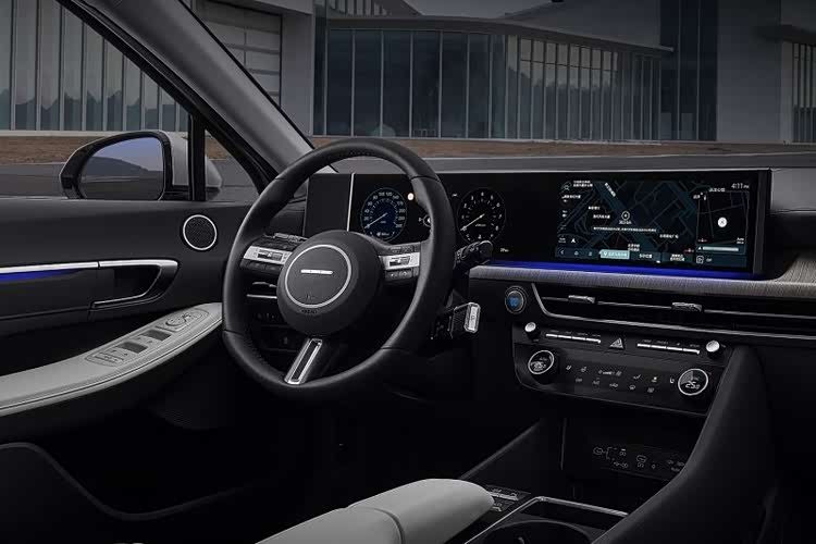 内饰配置方面,全新第11代索纳塔采用双12.3英寸连屏设计,适当的曲面弧度更讨好驾驶者的视角,下方贯穿式的空调出风口,特点鲜明。值得一提的是,新车采用了电子怀挡设计,进一步优化了中控台下方空间。2.0T N Line车型全部采用运动风格座椅。新车智能座舱全面升级,应用英伟达芯片,支持CarPlay、CarLife手机互联系统。独有的指纹识别功能,可以清晰分割车主与代驾人员的车机系统访问权限。