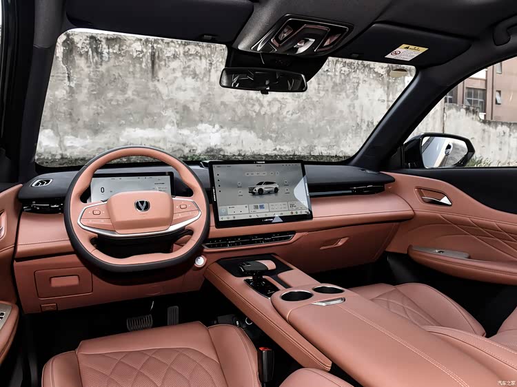相比于个性前卫的外观,长安UNI-Z的内饰则收敛了很多,采用了当下主流的简约风格,双色拼接色调配合一体式环抱座舱设计,再加上全系标配的10.25英寸的全液晶仪表以及14.6英寸的中控大屏,乍一看,层次感、设计感甚至档次感都不差。