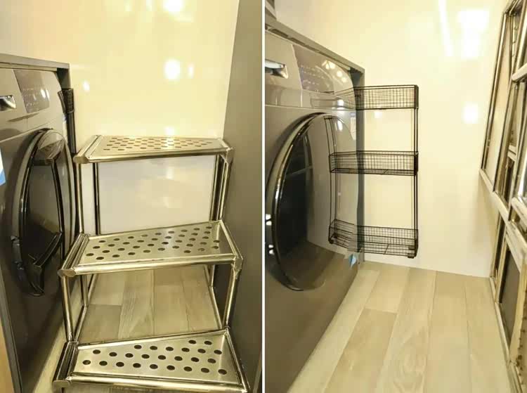通往二楼的第一节楼梯为折叠设计,平时折叠在一侧便于使用洗衣机。