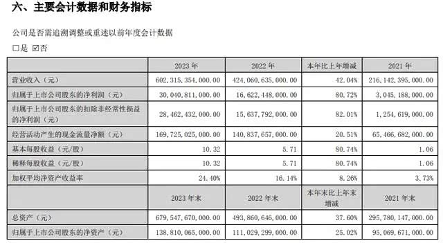 数据显示,去年全年,比亚迪实现营业收入约6023.15亿元,同比增长42.04%;净利润达到300.41亿元,同比增长80.72%;扣非净利润为284.62亿元,同比增长82.01%。