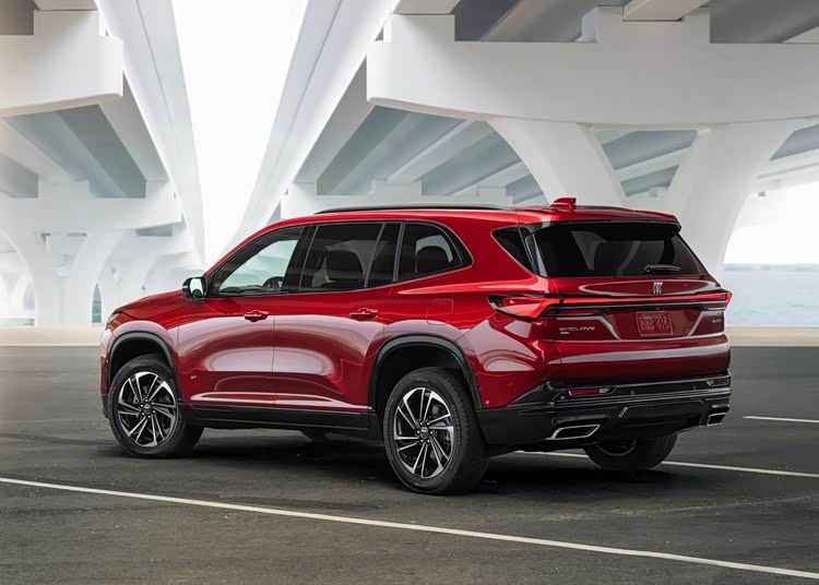 侧面给人的第一观感是长,比现款圆润的造型要显得的长很多,车顶线条平直,前后错落式的腰线和内凹式车门带来丰富的层次感和力量感,前后轮拱换成了方形,配备20英寸多幅条轮毂,其中ST版本还在车身四周增加了亮黑色塑料包围,车窗饰条和车顶行李架也都换成了亮黑色。
