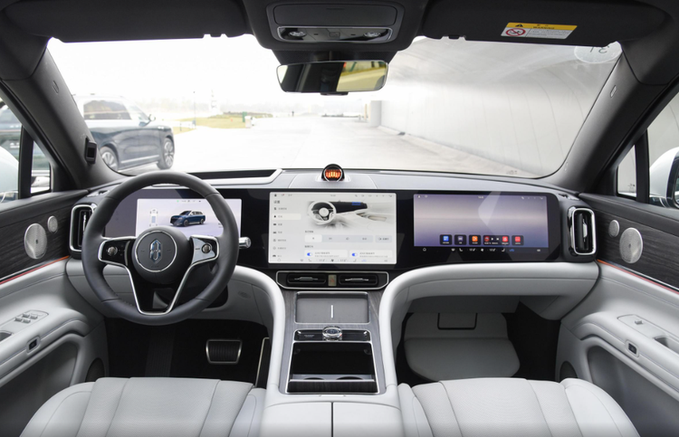 进入车内,两车均在中控台覆盖大量真皮、实木材质,突出豪华质感,同时采用多屏设计、取消所有的实体按键,营造出不错的科技氛围,呈现出时下流行的简约风格。