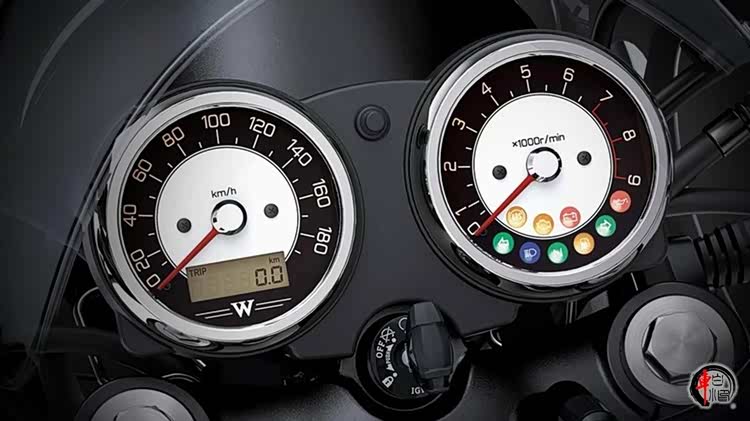 动力性能方面,川崎W800继承了经典车型W1的风格。搭载了一台直列双缸风冷引擎,实际排量为773cc,采用SOHC四气门结构设计。相较于水冷引擎,风冷引擎在动力输出上更为柔和。提供47.6匹的最大马力,最大功率35kW。在4800转时可输出62.9Nm的最大扭矩。尽管是一款复古机车,但其起步加速和中段性能的表现也尤为出色。