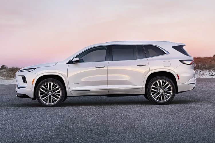 全新昂科雷的侧面采用平直的车顶线条设计,从而可以为第三排乘客带去更好的头部空间。目前官方还没有透露新车的具体车身尺寸,但海外媒体透露,全新昂科雷比上一代车型要魁梧很多,车长基本在5米以上,更是比国内的昂科旗要大很多,美式SUV风格明显要更加鲜明。