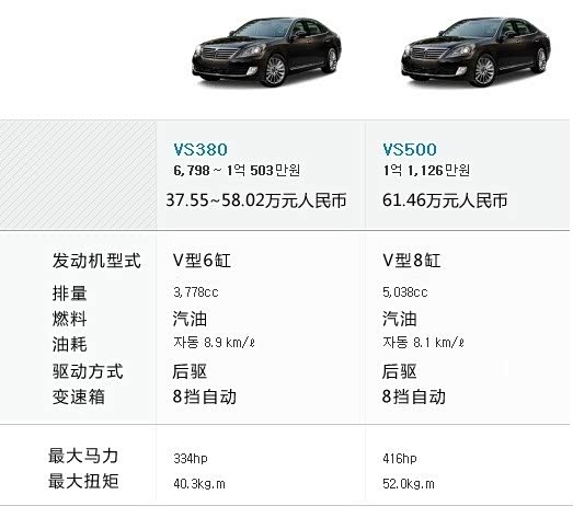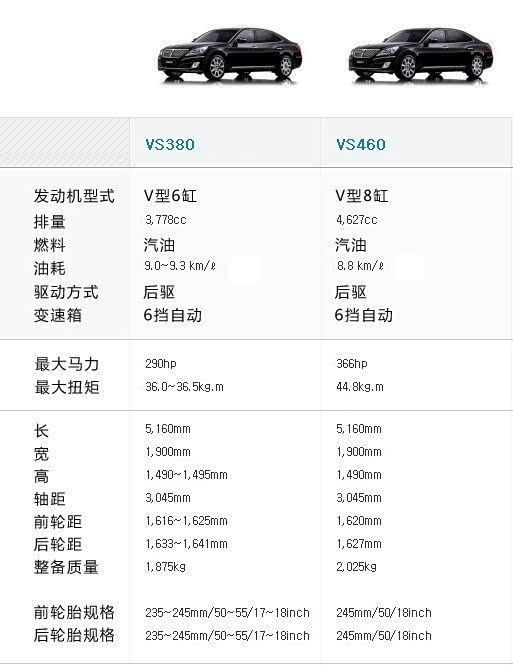 重点说一下动力,第一代雅科仕9年的生命中,始终搭载5挡自动变速箱,但是有多款发动机。上图是在2008年停产之前,搭载的三款发动机。1999年刚上市的时候,搭载现代汽车研发的3.0升V6(第三代雅尊也有搭载)3.5升V6,现代三菱合作研发的4.5升V8,三款发动机。后来3.8升V6代替3.0升V6,3.3升V6代替3.5升V6。