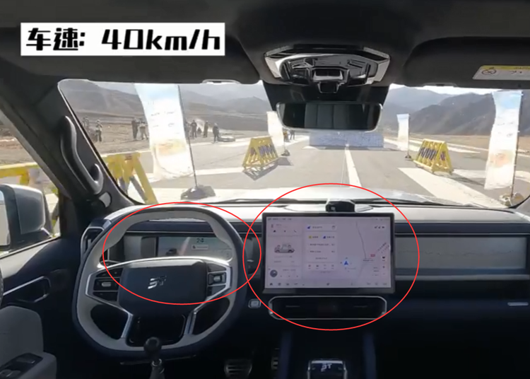 从图中能够看出当时的车速是40Km/h,虽说不及碰撞标准速度,但这承载墙一般都在居民区,模拟的就是普通路况下的撞击效果,实际上小区内比这速度还低,同时车内情况能够看出整车处于通电状态,并且能看到速度显示,刚刚出发状态显然达不到40Km/h的时速,确切的说是撞击那一刻的速度能达到。