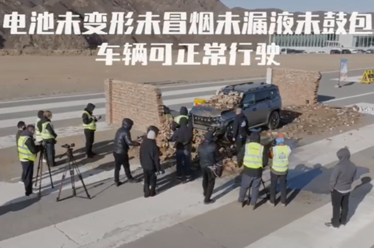 现场检测的结果也是电池包外壳没有变形,最为关键的就是未曾冒烟、漏液和鼓包,有人可能会说这强度并不是很高,但是你别忘了车头只能撞击到它接触到的界面,下面还是有可能剐蹭到电池包外壳的,所以这一点也相当的重要。