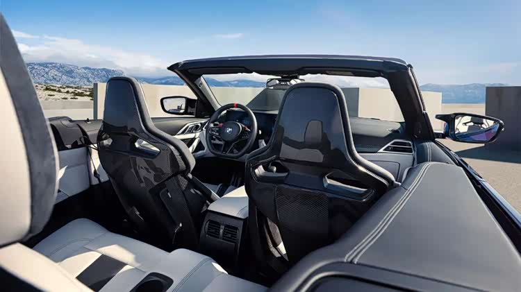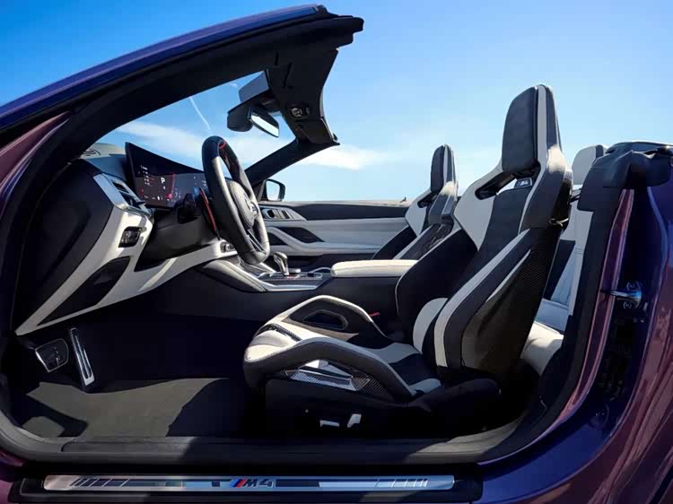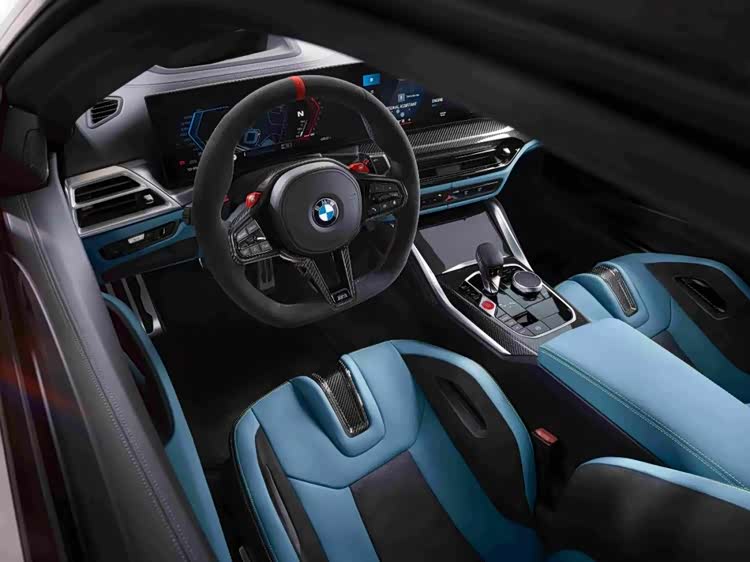 内饰风格与大胆张扬的外观遥相呼应,营造出强烈的运动风范。M多功能真皮方向盘首次采用了底部扁平化设计的平底方向盘,并配备了12点回正标识,将握感与运动驾驶氛围拉满。而在细节之处,全新设计的黑色高光出风口在巧妙弱化车辆功能元素的同时,增加了仪表台上的碳纤维装饰条的面积,再结合上标志性的双拼色前排M碳纤维座椅,中控台上的红色启动/熄火按钮、M专属仪表和抬头显示/主题,可有效强化了车辆运动感知,彰显BMW M车型所应享受的运动与豪华。