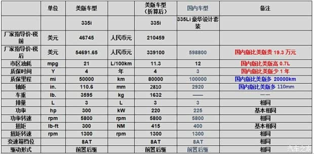 1. 国内版价格全系高于美版。利用国内消费者对宝马品牌的信任,宝马毅然决然的把定价直接提高了10-20万元。本次比较的四款车型的溢价率分别达到了42%、54%、66%、77%,由此而带来的利润真的是非常可观。