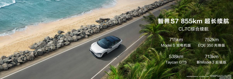 要让纯电车型成为家庭唯一且可靠的出行工具,首要任务便是彻底消除续航焦虑,实现“即插即用”的无缝出行体验。智界S7凭借其“双800”核心技术,即CLTC工况下855km的超长续航里程与800V高压快充技术,从续航能力和补能效率两方面双管齐下,从根本上解决了纯电车型的核心痛点,赋予其成为家庭首车的坚实基础。