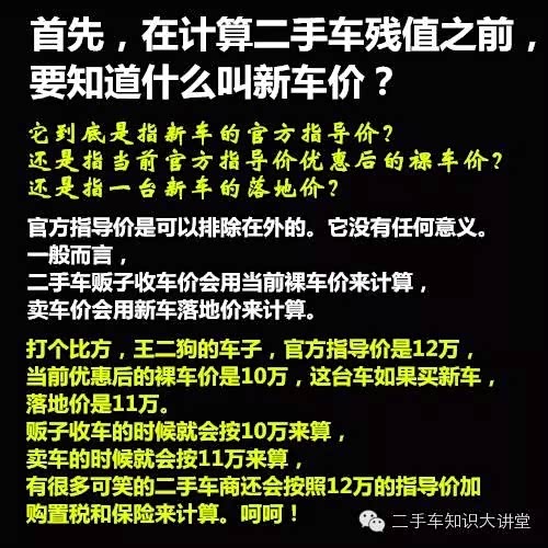 1,很多网友在微信公众号里问我,二手车该怎么估价,以及二手车贩子是怎么估价的,有没有公式等等。他们有想买车的,也有想卖车的。