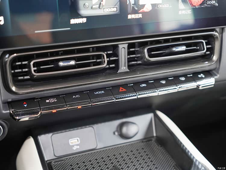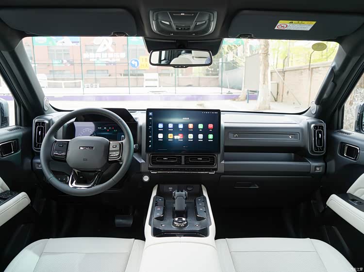 新款车型的内饰变化不大,不过除了棕色和米色配色之外,新增了黑米的内饰。整体的风格是采用了十分规整的布局,副驾驶前方还设置了一个粗壮的扶手,很有硬派SUV的范儿。新车全系标配了14.6英寸的中控屏幕以及12.3英寸的全液晶仪表盘,中控区域保留了空调相关的实体按键,便于操作。