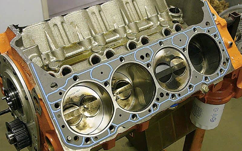 下图为老的small block发动机的缸盖和缸垫