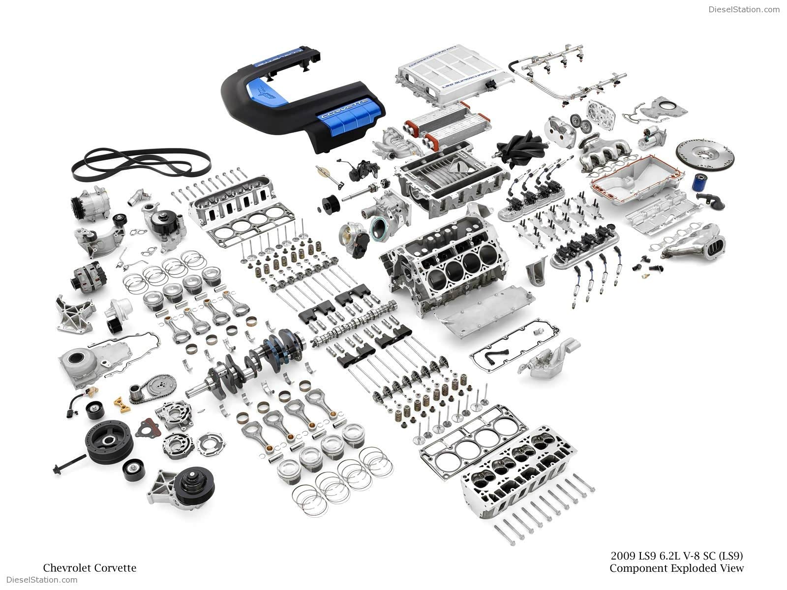 这个发动机是通用的重头戏,这是通用公司在发布新款LT4发动机之前,量产机型当中马力最大的产品,配备Eaton 2.3L ,4叶式rootstype机械增压,进气歧管内两片水冷热交换器,目前装配了这款发动机的车型只有C6 Corvette ZR1。