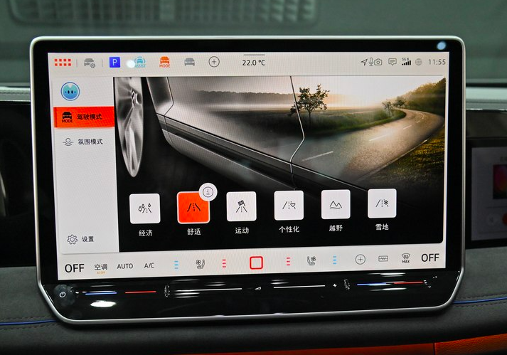总体来看,途观L Pro的座舱向ID.车系看齐,科技感、智能化确实达到了油车的新高度。并且还摒弃了之前的机械挡杆,换成了怀挡设计,空闲出来的换挡位置,由一个旋钮屏替代(官方命名为黑晶智控旋钮),支持音量、驾驶和氛围模式随动控制显示,比较有科技氛围感。