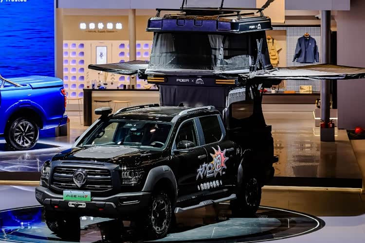 硬核越野配置包括轻量化非承载底盘、三把锁、博格华纳4A+MLOCK智能四驱、涉水喉、18英寸AT胎、3.3吨拖车资质、12500磅T-MAX前绞盘等装备,并预留24个矩阵式锚点,无限拓展户外野奢场景。顺带一提,同样采用Hi4-T动力总成的还有一台“大力仑炮”,成为长城集团的展台里引得无数网友慕名前来打卡的超级“显眼包”。