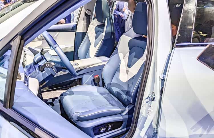 前排配置电动可调的跑车化座椅,采用蓝白对比配色,造型简洁立体外,一体式的头枕设计也为运动氛围加分,泡棉质地软硬适中,舒适又能提供足够支撑力,腰侧的包裹感也相当扎实。
