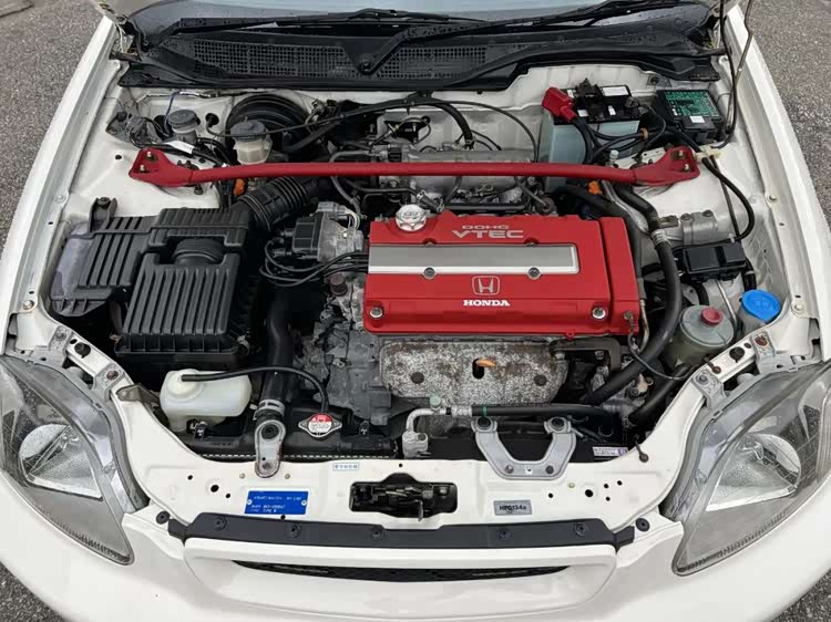 最让本田引以为傲的当然是升功率破百的红头自吸VTEC发动机,EK9搭载代号为B16B发动机,能在8200rpm/min输出185匹马力,在7200rpm/min输出160牛·米扭矩,匹配5速手动变速箱,加上1,070公斤的车重,拥有不错的马力推重比,百公里加速约6.7秒。