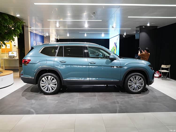 车身侧面展现出中大型SUV的气场,硬朗的腰线从车头贯穿至车尾,视觉上拉伸了整车的长度,前后轮眉整体向外突出,看起来力量感十足。车窗边框和车顶行李架都是采用镀铬饰条进行修饰,为车身侧面提升豪华感的同时增加了层次感,看起来不臃肿。大众途昂第二排以及第三排都配备了隐私玻璃,保证后排乘客的隐私性。车身尺寸方面的长宽高分别为:5052/1989/1773mm,轴距为2980mm。轮胎分别搭载了19英寸、20英寸、和21英寸三种规格,其中20英寸轮胎的表现比较均衡,保证舒适性的情况下,也降低了后期的更换成本。