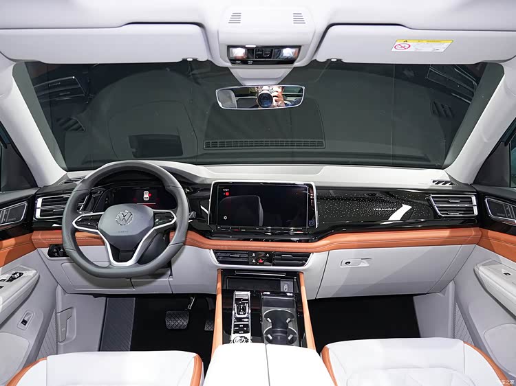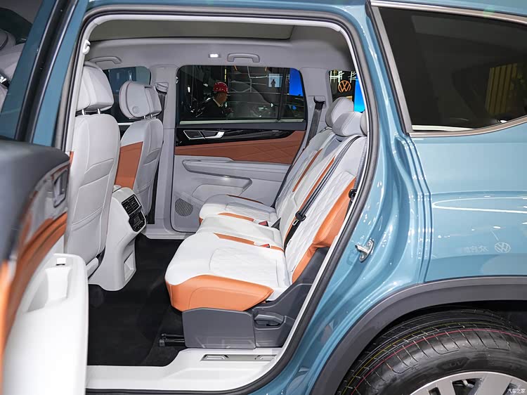 大众途昂车内采用双拼色布局设计,橙色的加入看起来更有活力。座椅的填充物很厚实,表面用真皮进行包裹,并且进行了打孔处理,具备通风和加热功能,提升了乘坐舒适性。第二排的空间很大,如果把第三排座椅放倒,就能变成一台大五座SUV,而且大众途昂采用全景天窗设计,面积也很大,保证第二排和第三排乘客的通透性。