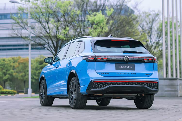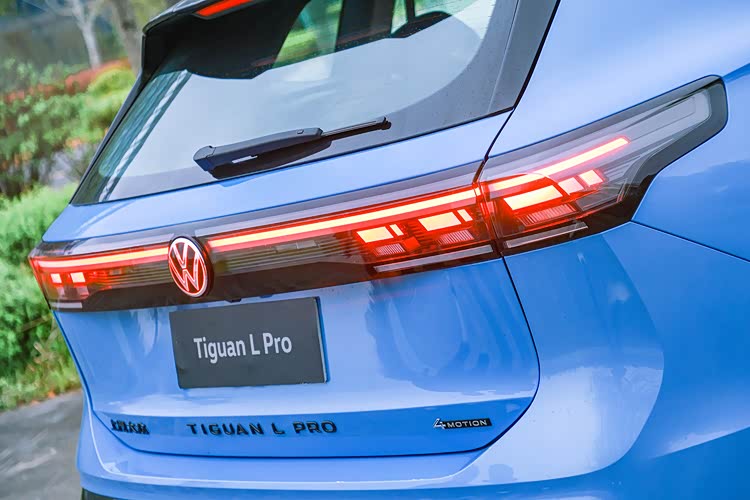 除了轮毂的这个特点之外,途观L Pro还有一个很容易被分辨出来的特点,那就是它车尾所采用的贯穿式尾灯。虽然说现在贯穿式尾灯已经不是什么新鲜玩意儿,但是配合着它那比较圆润的尾部造型,别说这辨识度还真的是挺高的。