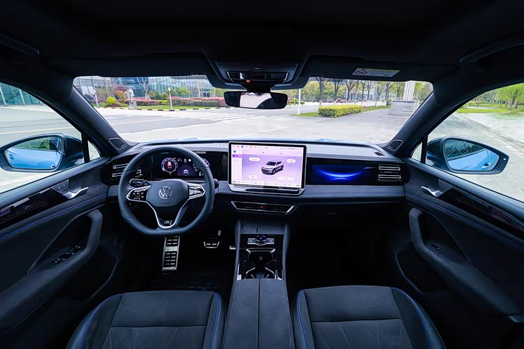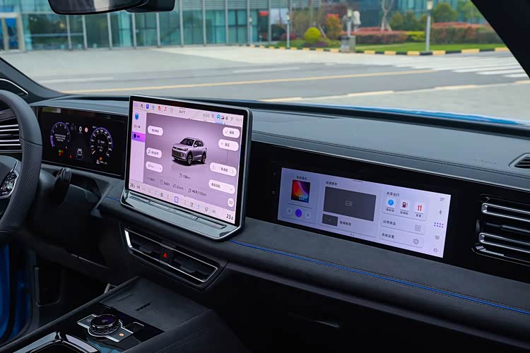 对于途观L Pro的外观来说,它确实保持了海外版车型的样子,但是对于内饰来说,它则做出了属于自己的改变,这个改变还是很符合时代的,那就是它加入了一个11.6英寸的副驾驶娱乐屏,并且也采用了怀挡设计,原来的挡把位置则有驾驶模式旋钮、启动按钮和电子手刹替代。之前大家都吐槽大众的车机系统,而对于这款途观L PRO来说,它使用了全新的车机系统,那这套系统可真的要比之前的系统好用多了。而对于那块11.6英寸的屏幕来说,副驾驶可以在任何时候观看,但是主驾则完全看不到,因为为了驾驶安全,它采用了防偷窥的设计,从主驾这边看过去它就是一个黑屏。