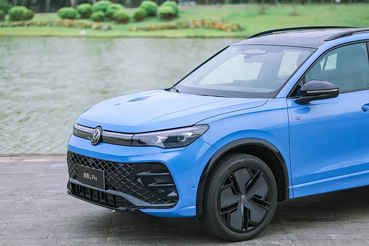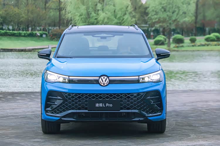 对于途观L Pro来说,它完全采用了海外版车型的设计,提供了运动前脸和先锋前脸两种造型,车辆整体的风格则是采用了大众家族化的设计风格,无论是格栅,还是包围,更或是前大灯灯组,就算你把车头的LOGO挡上你也可以知道它来自大众。而对于运动前脸来说,它的前包围采用的是蜂窝状的设计,并且配有代表运动的R标识,而普通版车型采用的则是横向镀铬条的设计。