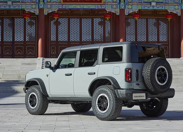 外观上,江铃福特烈马的车头设计霸气十足,采用了无边界矩形中网设计,并与两侧犀利有神的圆形大灯组融为一体,凸显出强烈的力量感和科技味道。同时,保险杠下方的银色护板不仅提升了视觉冲击力,还具备拖车钩,不仅能够有效防止越野时飞溅的石子对车身的损伤,越野性能也进一步拓展。从侧面看,烈马的车身线条流畅且充满力量感,较高的离地间隙和凸出的轮拱造型强调了其硬派越野的身份。至于车尾,福特烈马的车尾设计同样具有鲜明的特点,外挂式备胎是硬派越野车的标志性元素之一,不仅实用性强,同时也为车身增添了几分粗犷气息,同时尾门开启方式也分为两段式开启,其下半部分侧开,而上半部分上翻开启方式,印象点较强。车身尺寸方面,其定位中型SUV,采用承载式车身设计,长宽高分别为4800/1990/1835mm,轴距为2950mm。
