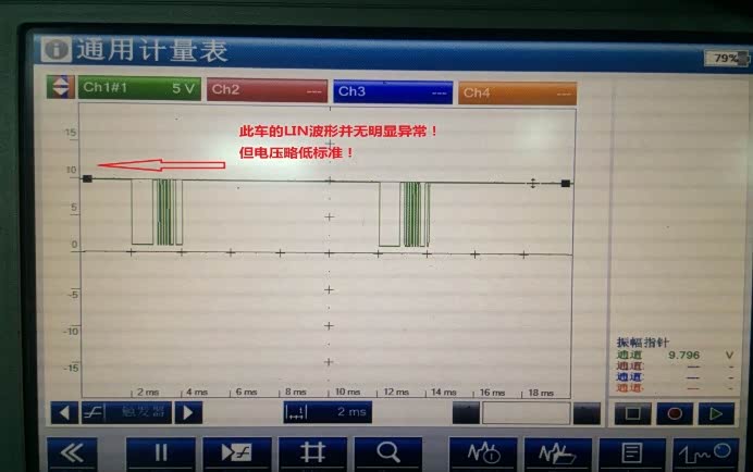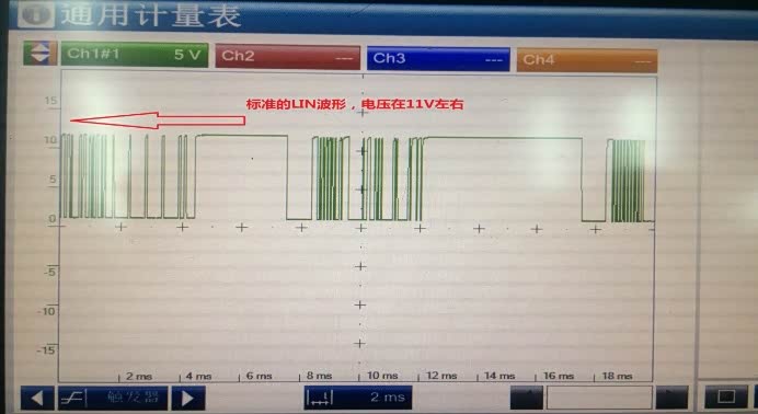 13. 虽然看上去并没明显异常,决定与同款车型对比!得出结果是该车的LIN线电压偏低!仅仅是偏低并不能说明问题所在。