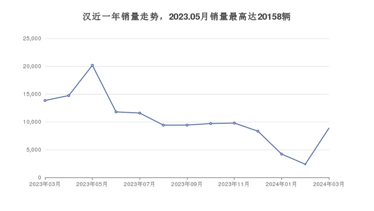 首年保值率为72%,在同级别车中排名第19。销量方面,汉,在2024年03月份的销量为8860辆,近一年汉的,累计销量达到134097辆。