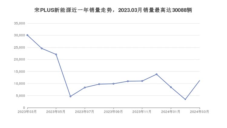 销量方面,宋PLUS新能源,在2024年03月份的销量为11266辆,近一年宋PLUS新能源的,累计销量达到168407辆。