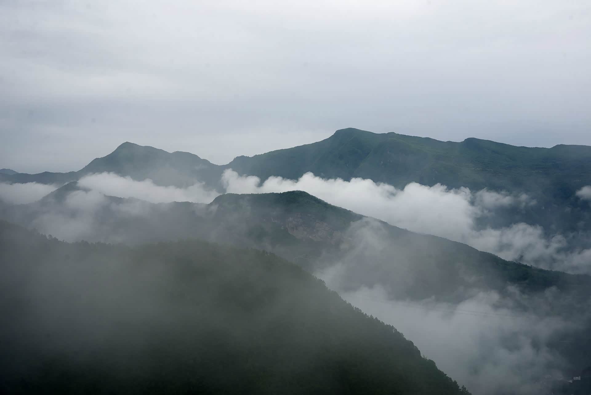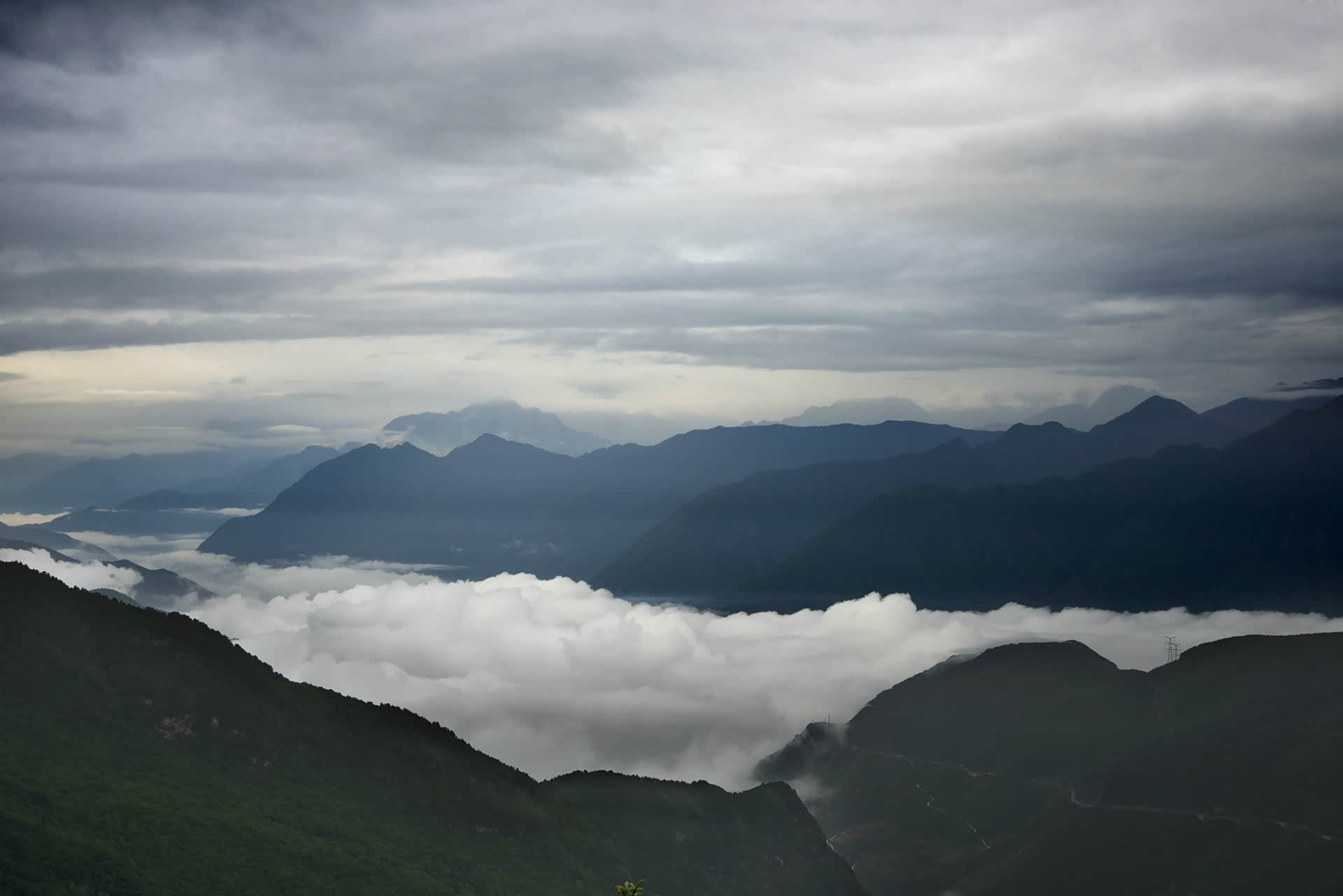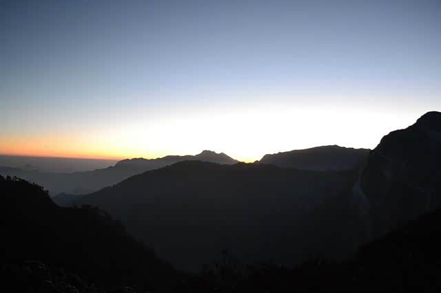 在这里,视野还是很开阔的,眼前便是大渡河峡谷和贡嘎山脉,还是依稀可见。从背后四川盆地不断上移的湿热空气凝结成了雨雾,时不时会有雨打在我们脸上,在帐篷上劈啪作响。