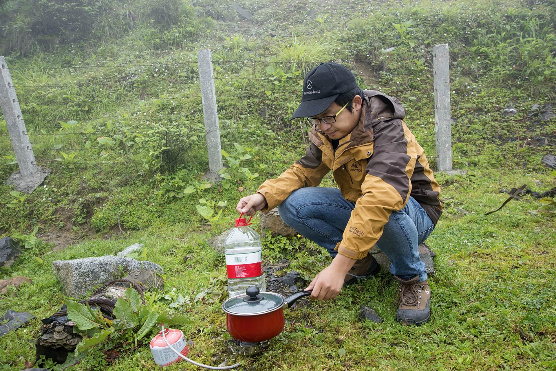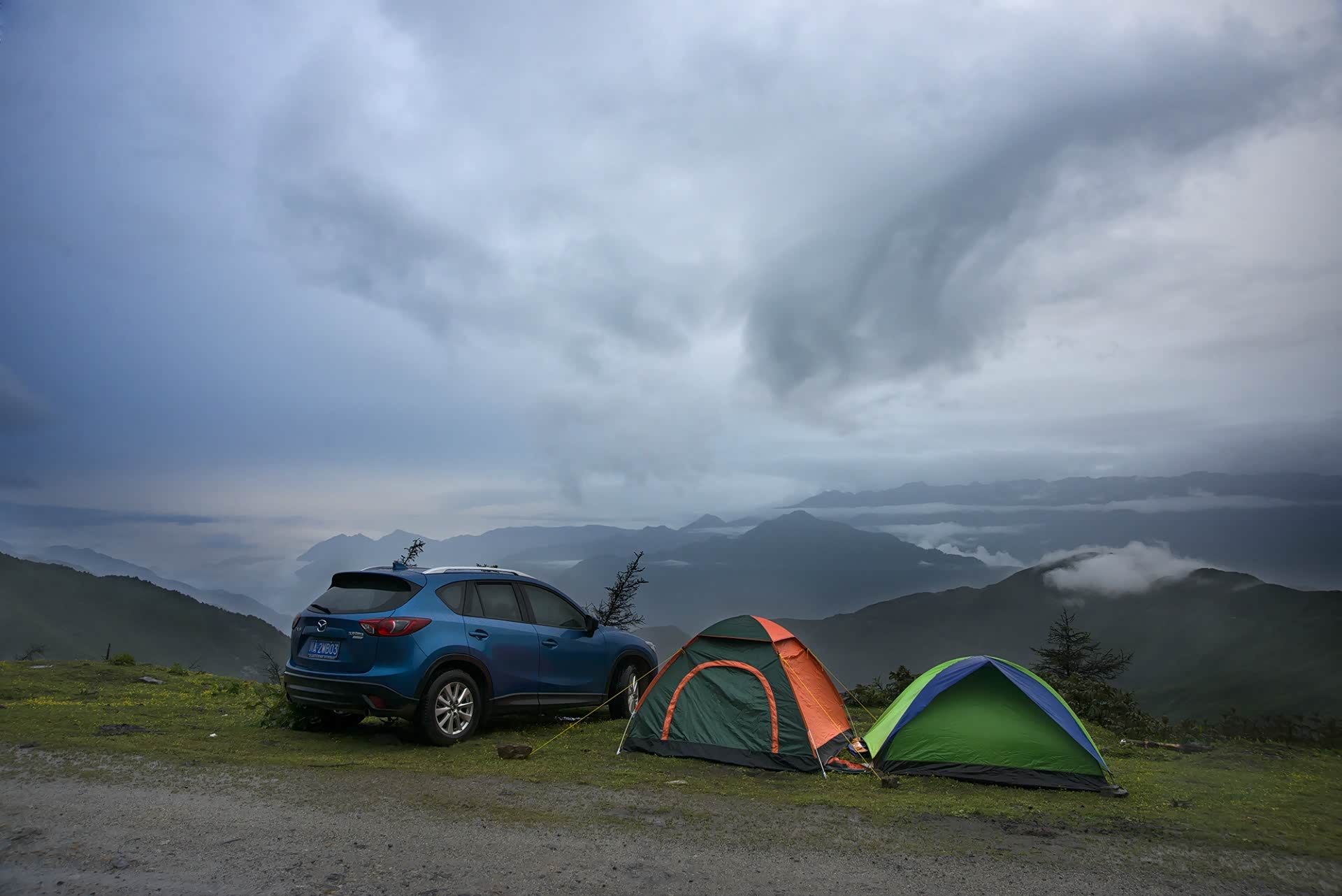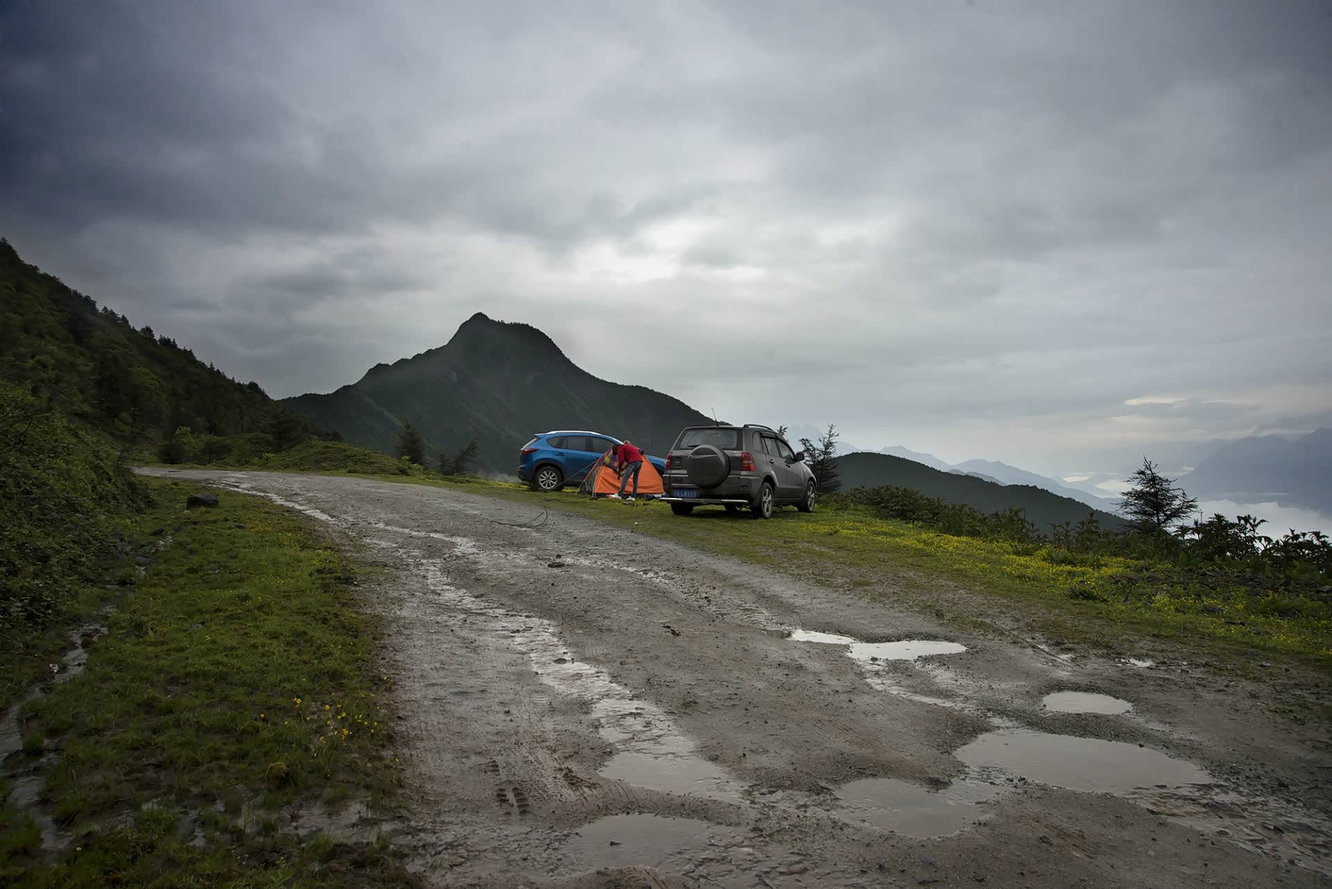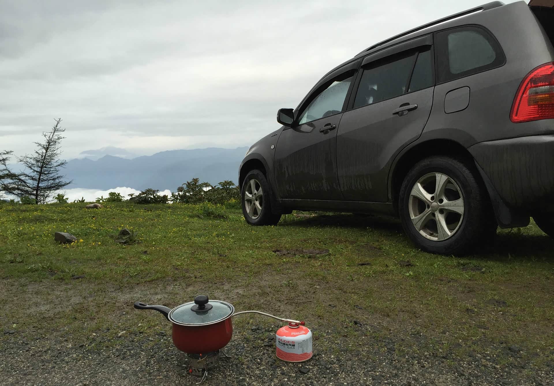 既来之,则安之。天气不好,自有天气不好的玩法,从垭口向下退回一公里左右,是最好的观景台。生火做饭,准备晚餐,依然将垃圾打包塞回车里,下山再处理掉。