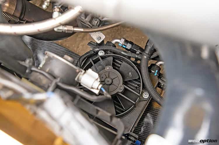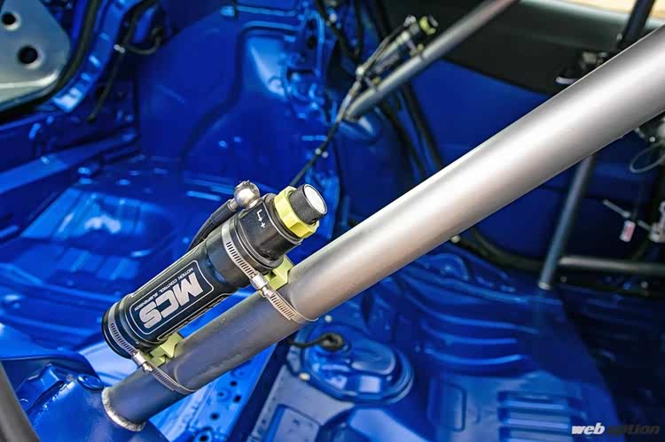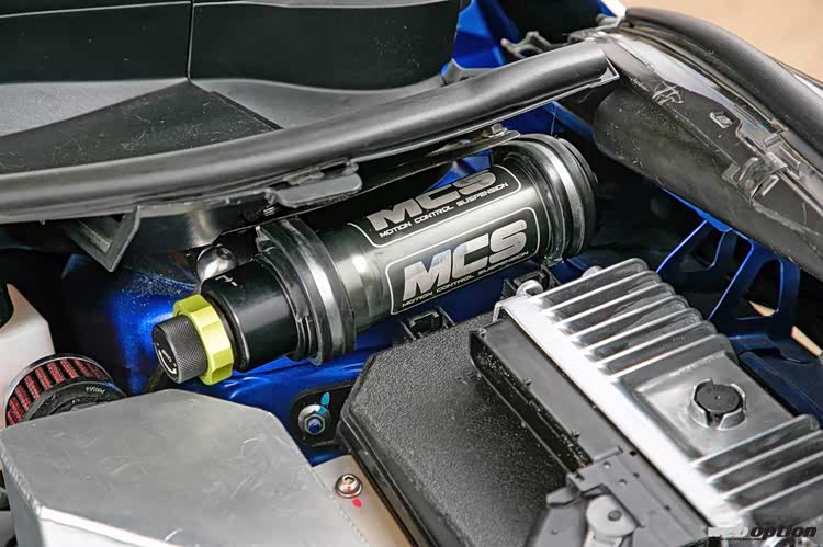 想在赛道有好成绩,拥有大马力还不够,底盘调教也是重点。在行走部分,悬架采用MCS的3way可调减震器,发动机舱和内部安装有独立的前后油箱,带有高/低阻尼调节喷嘴。