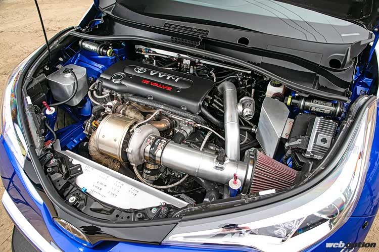 在北美售卖的C-HR,原厂搭载一台3ZR-FAE 2.0L直列四缸引擎,而DGS团队则移植了2AZ-FE型2.4L直列4DOHC引擎,也就是丰田杰路驰身上的那台机子,该车在北美被称为Scion tC。搭配5 速手动变速箱以及Hasport套件。