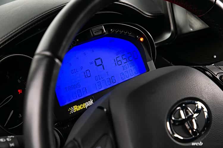 进入车内,你会惊奇的发现原厂仪表台、方向盘居然还是原厂的模样,但档把位置和脚踏板是定制铝合金部件。驾驶位前方是采用RacePack的带记录器功能的液晶仪表,并配备了GPS天线和无线电与驾驶员通信。