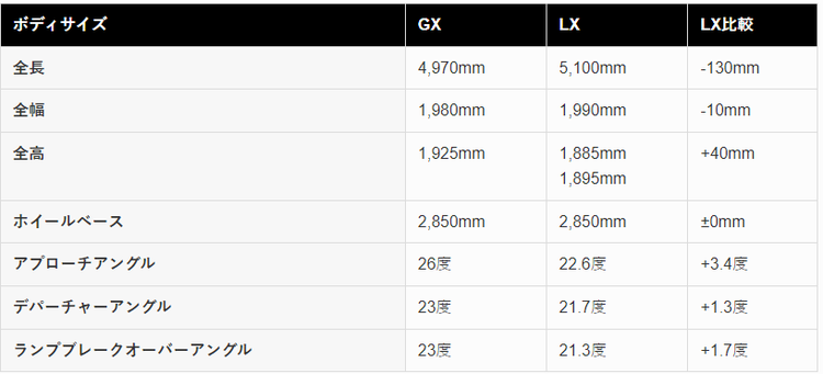 日规的新款GX550车身尺寸为长4,970mm,宽1,980mm,高1,925mm,轴距2,850mm。日规的丰田“Land Cruiser 250”(普拉多)和雷克萨斯“GX550”的车身尺寸非常接近。