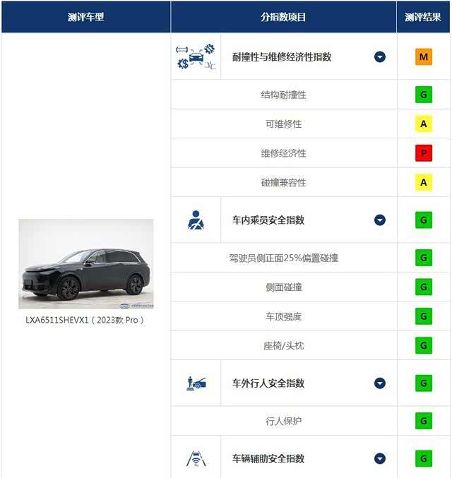 不过,中保研给出的结果,依然表明了理想L8具备和L9一样的安全性表现。理想L8在中保研碰撞测试的车内乘员安全评价、车外行人安全评价、车辆辅助安全评价中,均得到“G”,也就是优秀评价,可以说理想L8得到了“全优”评价。之前我们也说过,在中保研的碰撞测试结果中,“耐撞性与维修经济性指数”和安全性是无关的,它只代表低速碰撞后的修车花费高低。