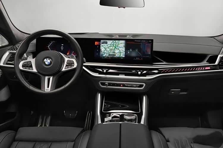 车内,全新宝马 X6 内饰布局令人惊艳。14.9 英寸中央触控显示屏与 12.3 英寸数字仪表盘组成显示区,屏幕向驾驶员倾斜,操作便捷。车机系统升级至 iDrive8.0 版本,支持众多智能功能,驾驶智能便捷。内饰材质工艺达宝马最高标准,乘客尽享舒适。