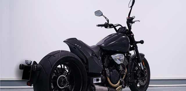 V型双缸的设计,总排量为800cc,其最大的马力达51.4ps,最大功率为37.8KW,最大扭矩为59N.M,虽然动力表现不是最抢眼的,但对于这款车主要还是强调外观设计上比较有特点,单摇臂的设计,加上宽大后胎的设计,总体而言,其气势依旧展现出大排量的气度。
