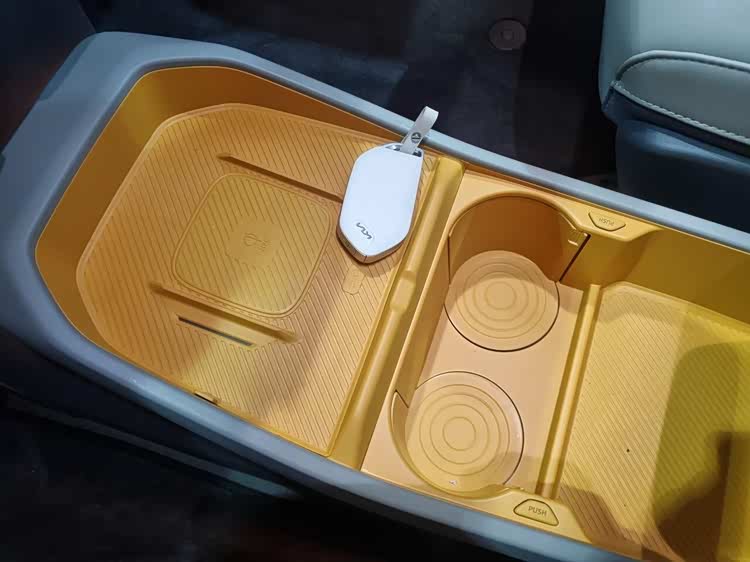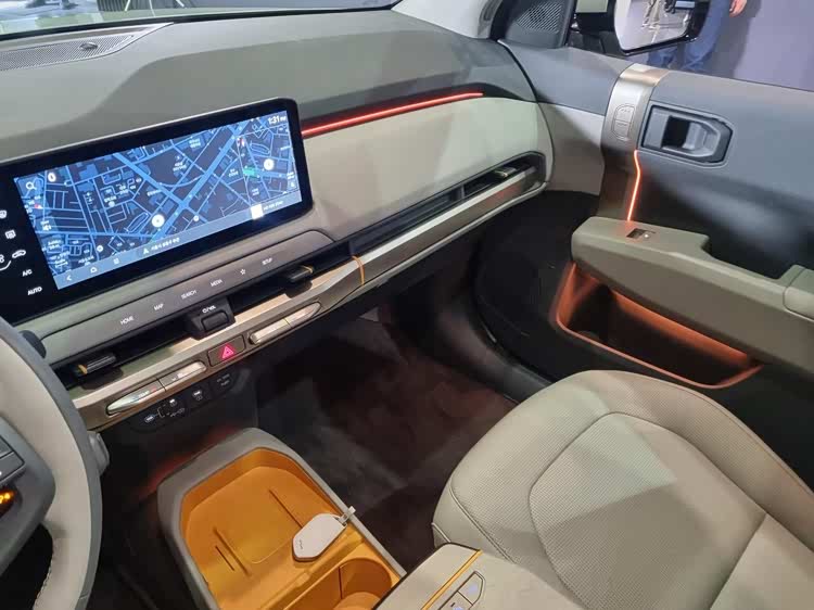 在内饰方面,采用了12.3英寸仪表、5英寸空调控制、12.3英寸中控屏等,还有12英寸的HUD 抬头显示功能。内饰整体的设计风格与EV5比较相似,但是也有很大区别。相似的地方在于启动按键,换挡按键,中控台上的实体按键,都与EV5相似。不同的地方在于方向盘设计,座椅,中央扶手,EV3又进行了大胆的创新。