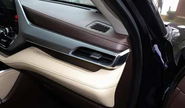 车舱方面,深浅两种材料在车舱内形成了撞色,其中,浅色部分均为带有边缘缝线工艺处置的软包,而车舱内大部分控制按键与旋钮则都是烤漆材料覆盖的,实际操作中会略带阻尼反馈,这会比较适用于盲操作。