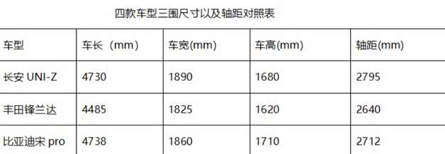 作为一款紧凑级SUV,长安UNI-Z在同级别中拥有最长的2795mm轴距,同时0.878的同级领先高宽比也为后排乘坐空间带来更宽敞和舒适的体验。相比丰田锋兰达,UNI-Z在轴距和尺寸方面都更大,具有绝对的空间优势。与比亚迪宋PRO相比,UNI-Z的轴距增加了80多毫米,使得第二排的空间表现更出色。而零跑C11则定位为中型SUV,其三维尺寸和轴距相较于紧凑级别更大。然而,观察跨级对比空间时,意义并不是很大。入门版车型的价格也达到了14.88万元,高配车型更是高达18.58万元。