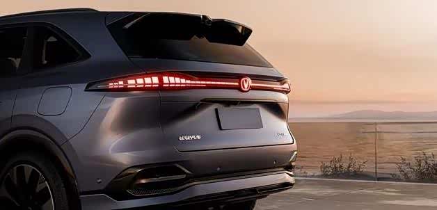 车尾部分,尾灯设计尤为抢眼,发光的长安车标巧妙地引出了虚线式的贯穿式灯带,左右两侧加粗的设计提升了辨识度。后风挡的倾斜角度较大,且呈弧面突出造型,车顶的大尺寸扰流板和后保险杠的黑色装饰使整车风格更加统一。