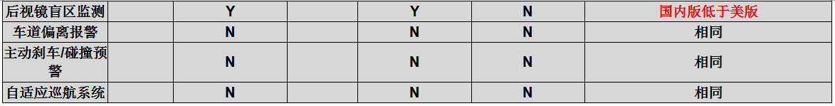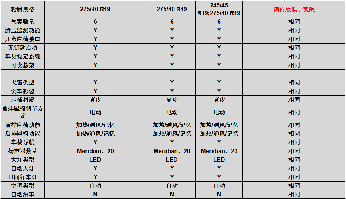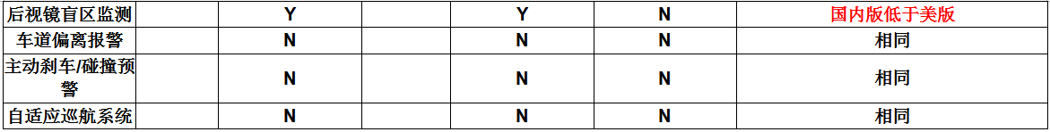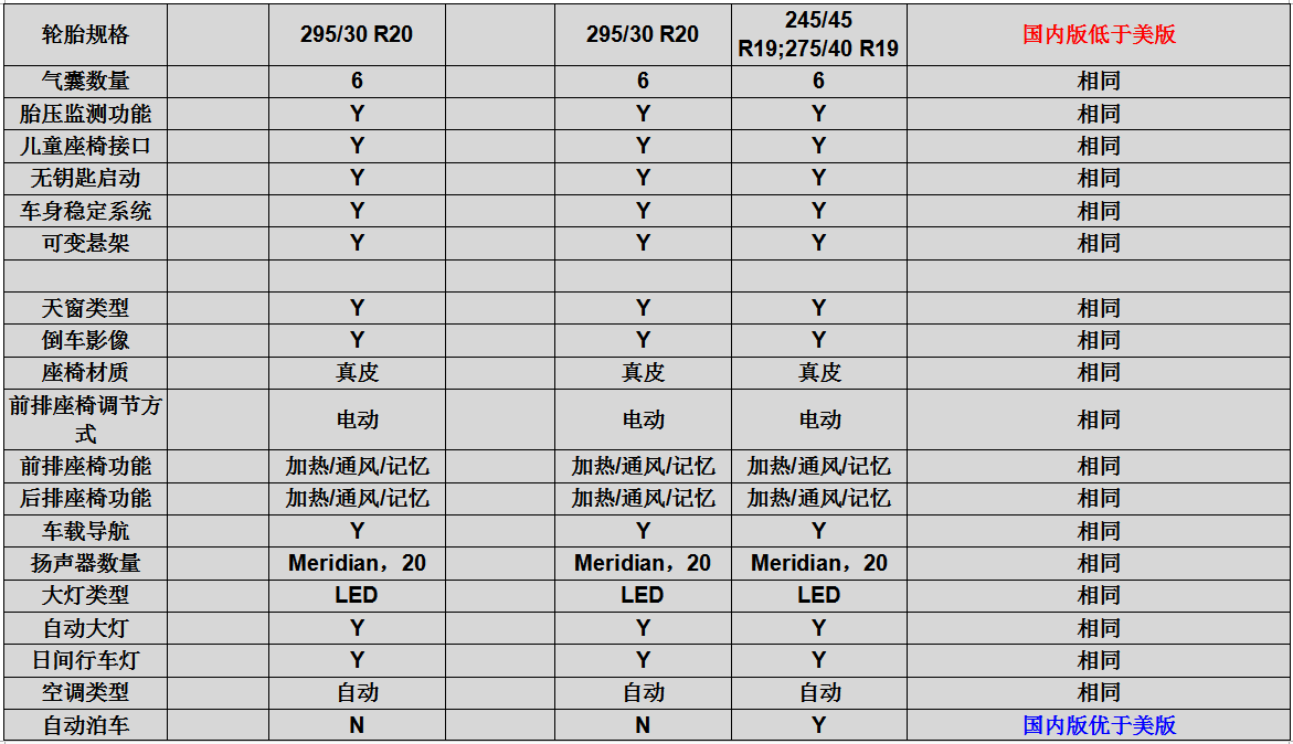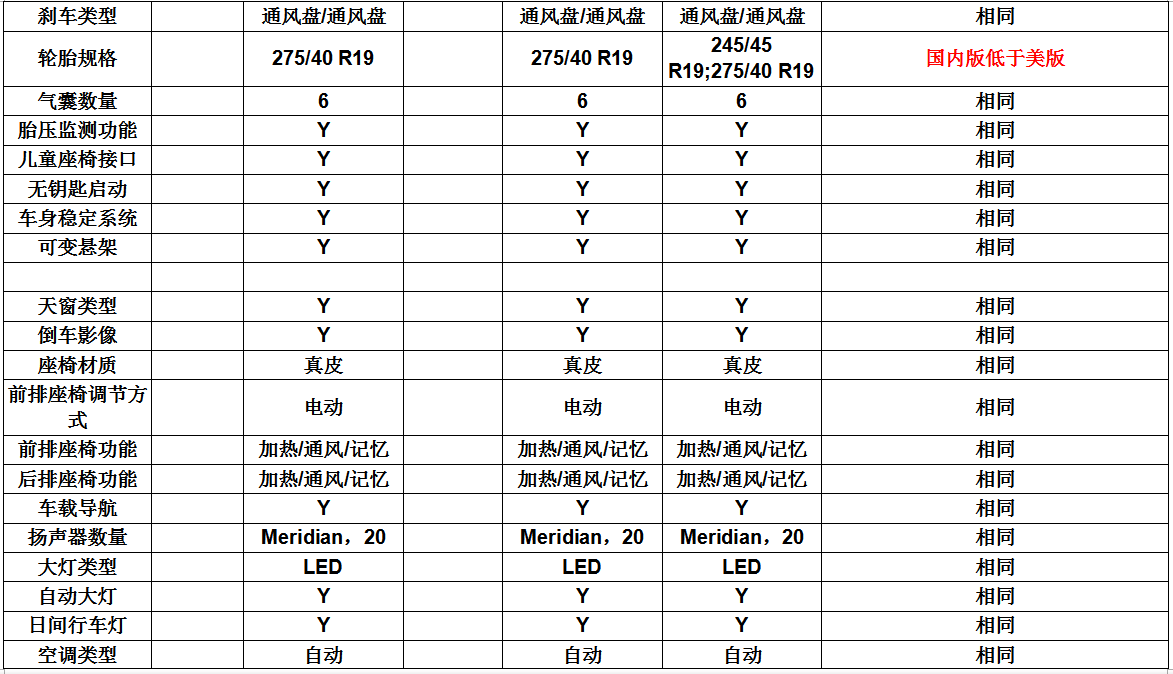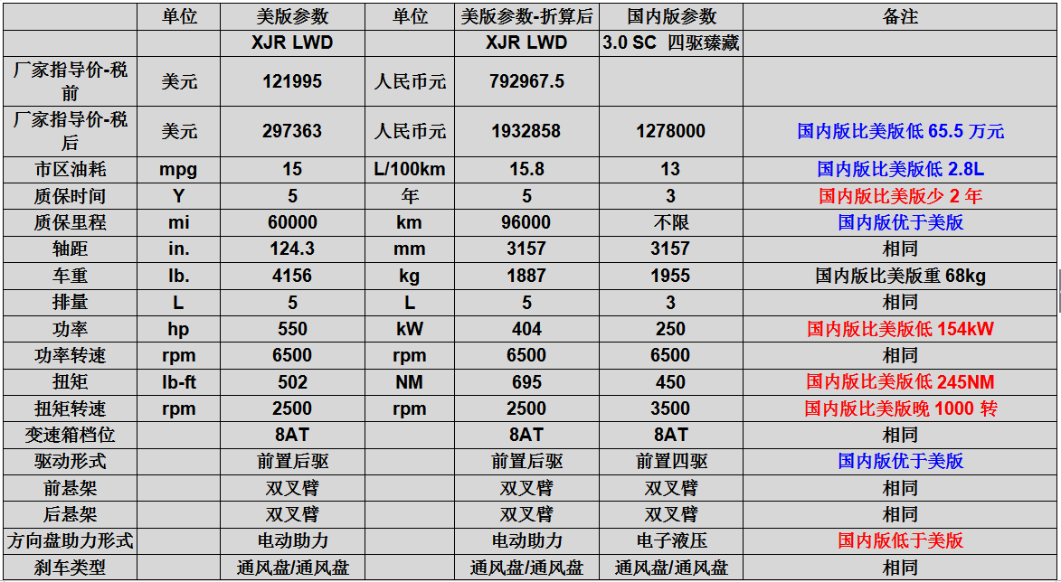 美版XJR LWD型与国内3.0 SC 四驱臻藏型参数对比见下表: