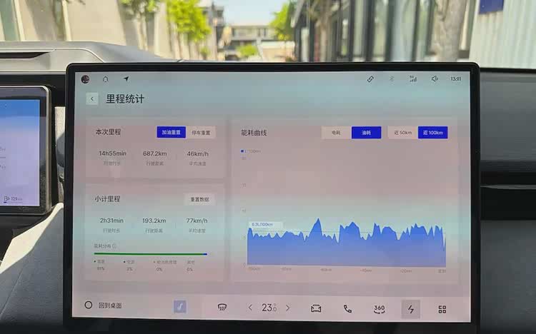 所以给大家的建议是:如果要跑高速,尽量不要把电量用到18km以下;即使不小心低于了18km,那么不要手动变回「纯电」,就顺其自然让系统使用「超级增程」好了,这样高速的油耗会更低。