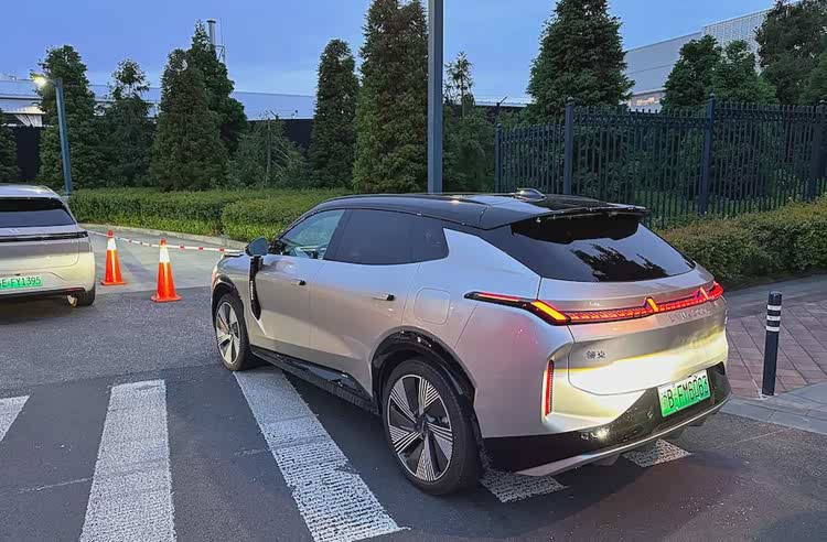▎自动辅助泊车,在车位划线清晰的情况下,能自动调整方向完成泊车,我们在智慧湾的露天停车场试了一下,整体还是挺顺利的,一把入库成功。