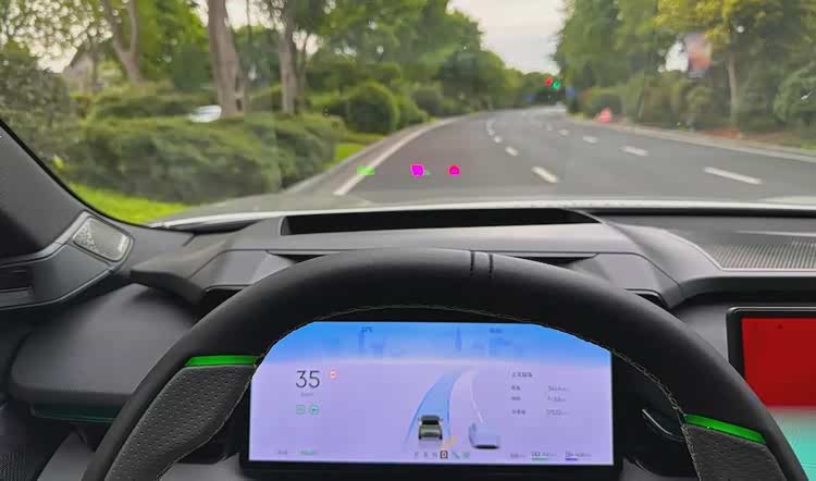 在手动驾驶时,刹停的瞬间有一些轻微的点头;但在辅驾状态下,刹停时反而没有明显点头。同时信息显示完备,能显示旁边车道的施工、三角锥等。