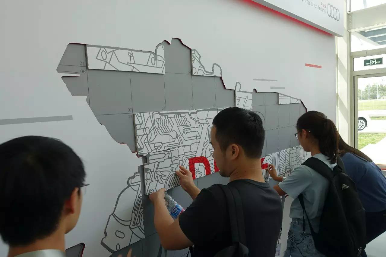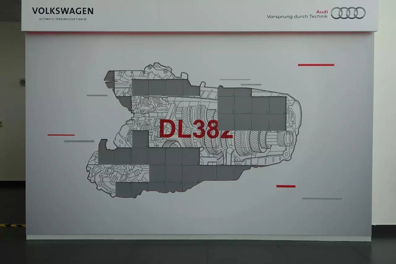 进入工厂之后,工作人员为所有到场的媒体分发了大小不一的拼图模块,并让大家对应模块后方的数字将其贴在身后的展示板上,虽然小小示板还没完全“竣工”,但隐约能看出,这是DL382变速箱的剖面图。