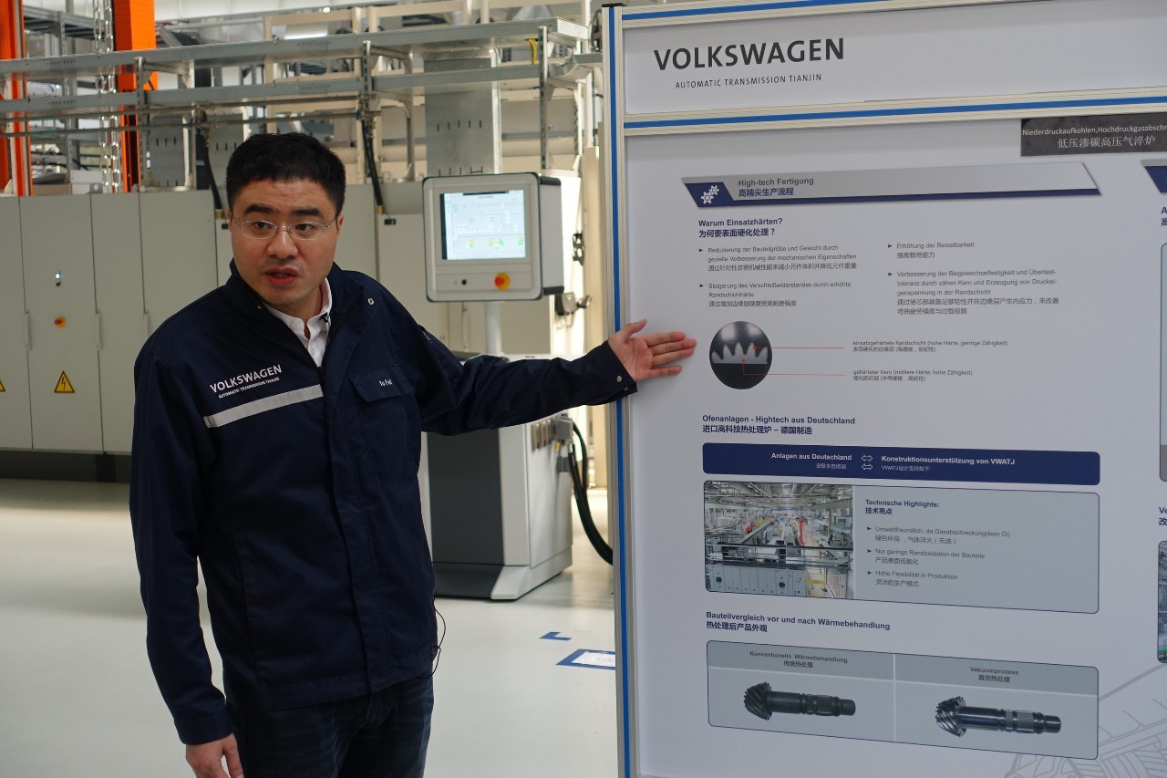 据工程师介绍,奥迪变速器工厂所用的这款热处理炉来自德国,相比于传统的油淬,这款设备能做到高压气淬,无油环保,而且每小时可节省大约400度电,技术亮点颇多。